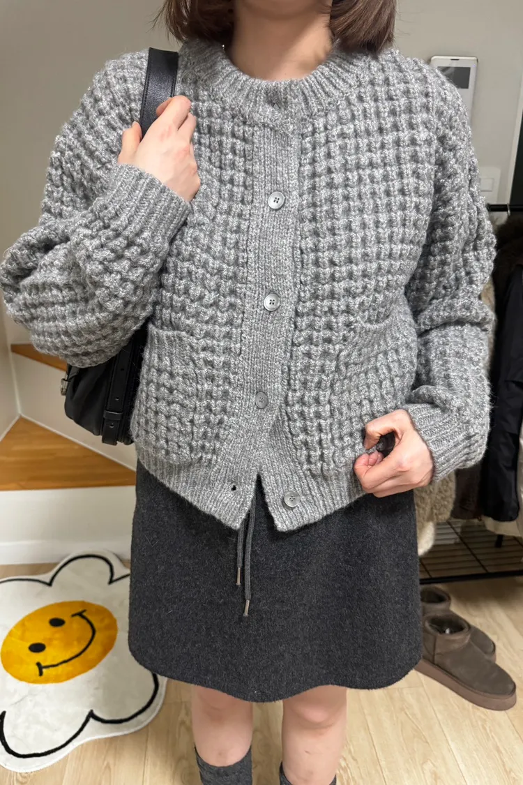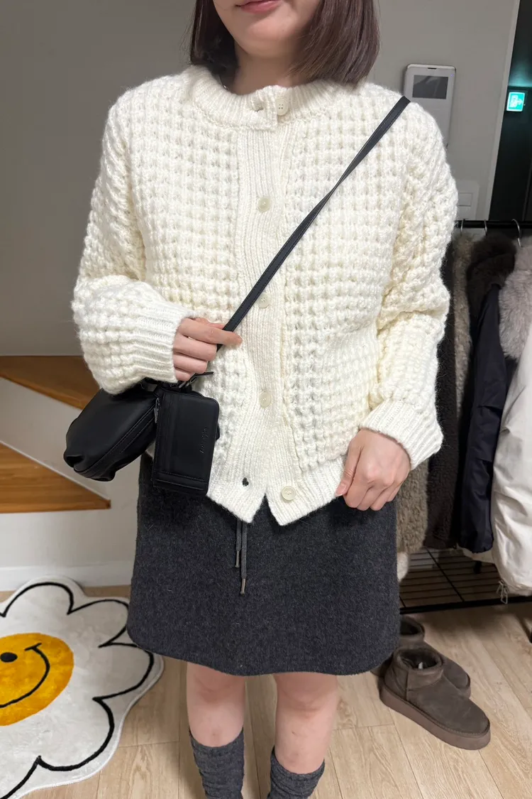 MM248有點貝殼釦鬆餅格排釦外罩
