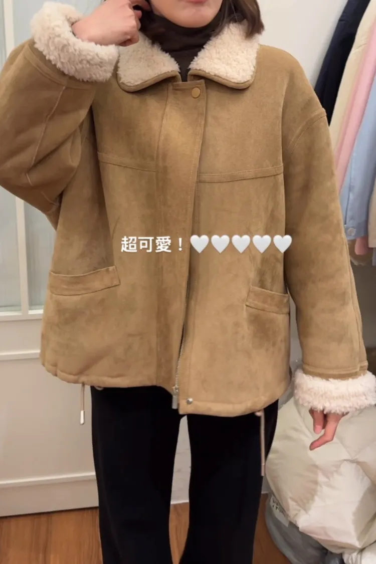 MM281-Jade market柔軟麂皮QQ毛領外套