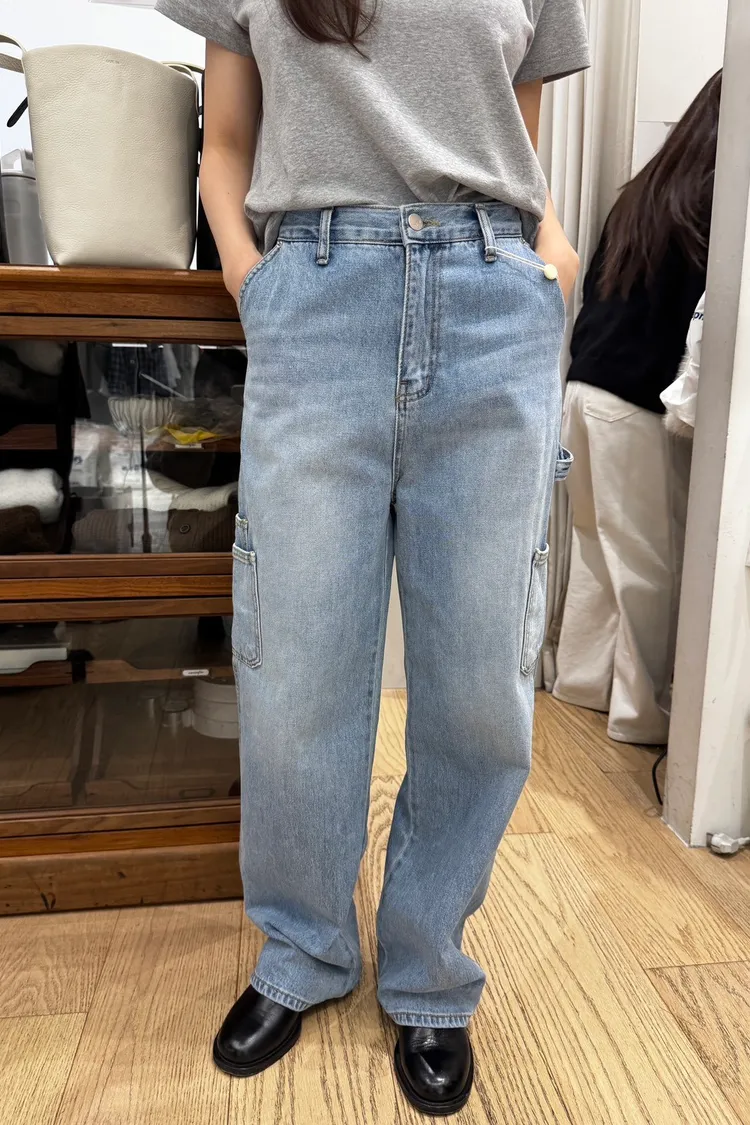 SS021愛笑眼睛工裝感刷色牛仔褲