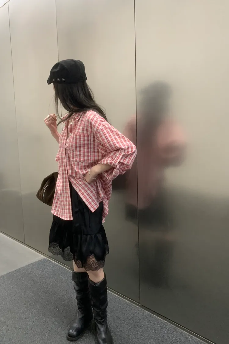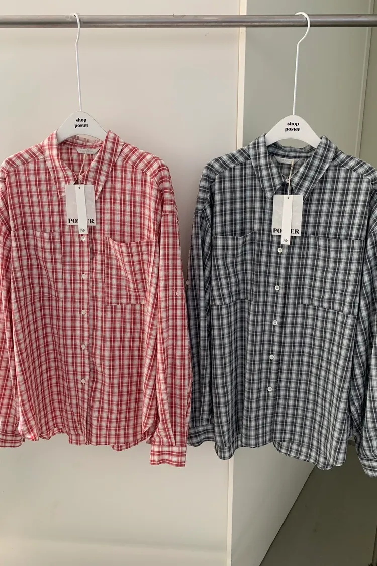 SS062-poster雙口袋格子襯衫