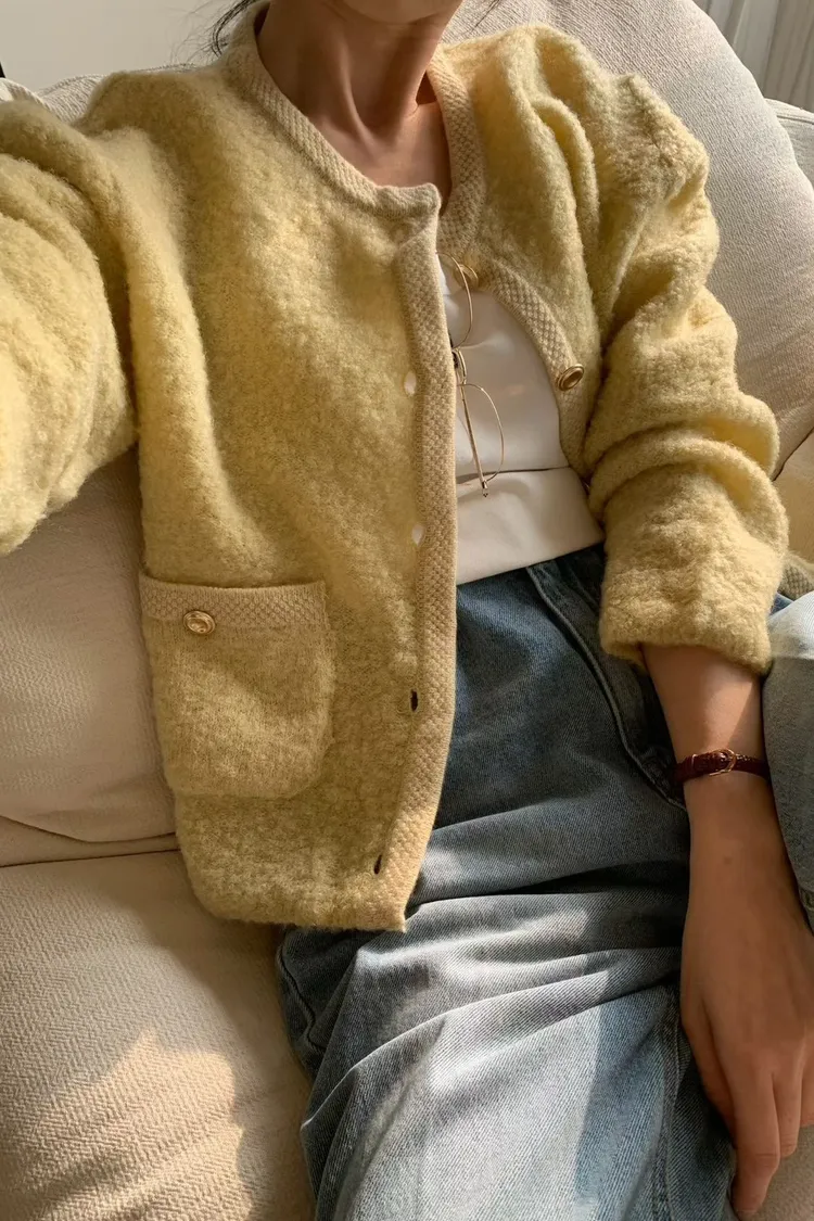 SS101小香風雙口袋andyoubrown金釦羊毛外套