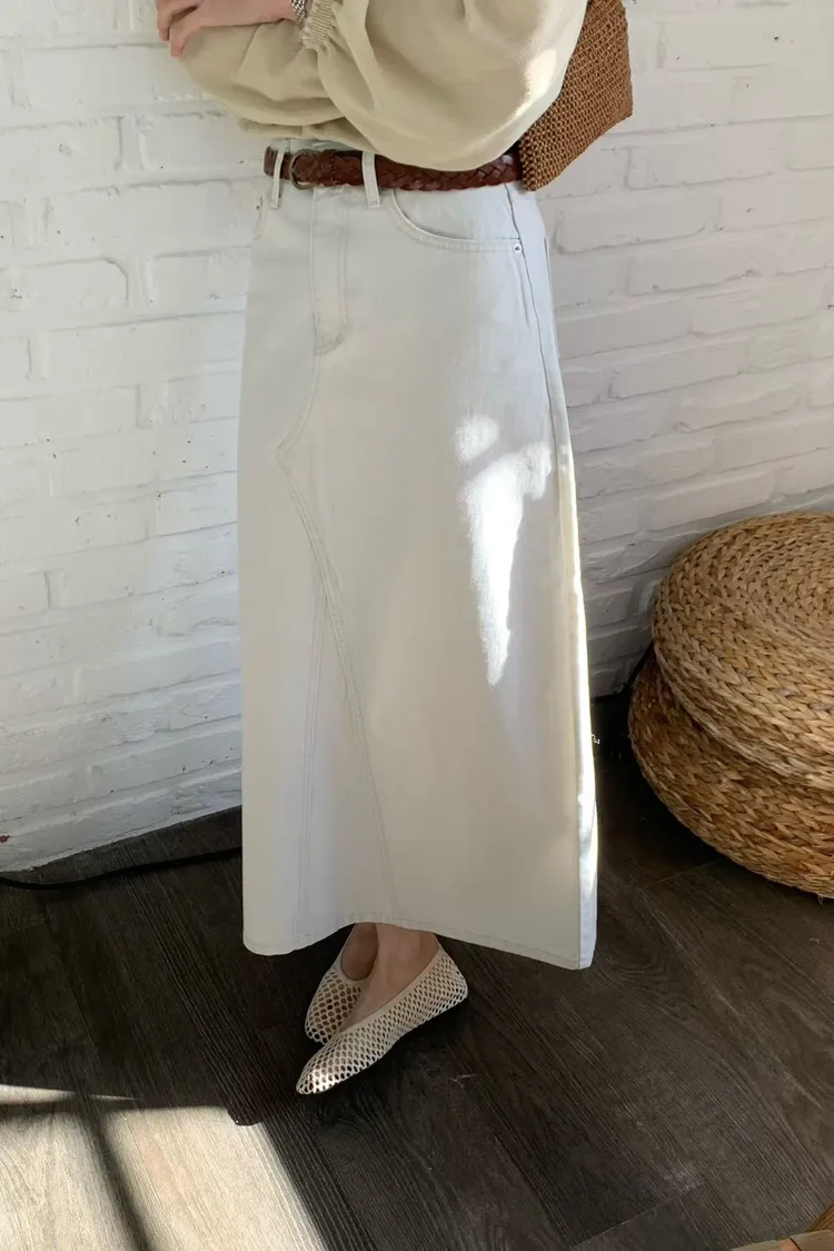 SS150百搭看不膩蝦味仙A字感牛仔長裙