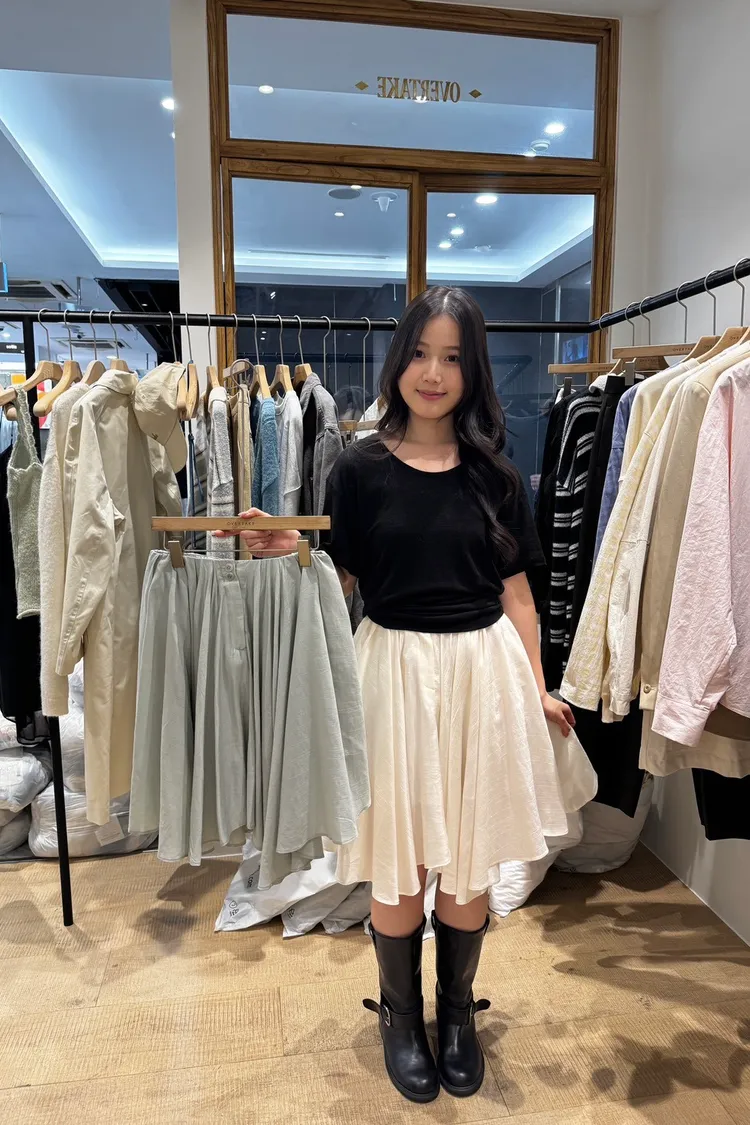 SS166-OVERTAKE有點光澤感不規則中長裙
