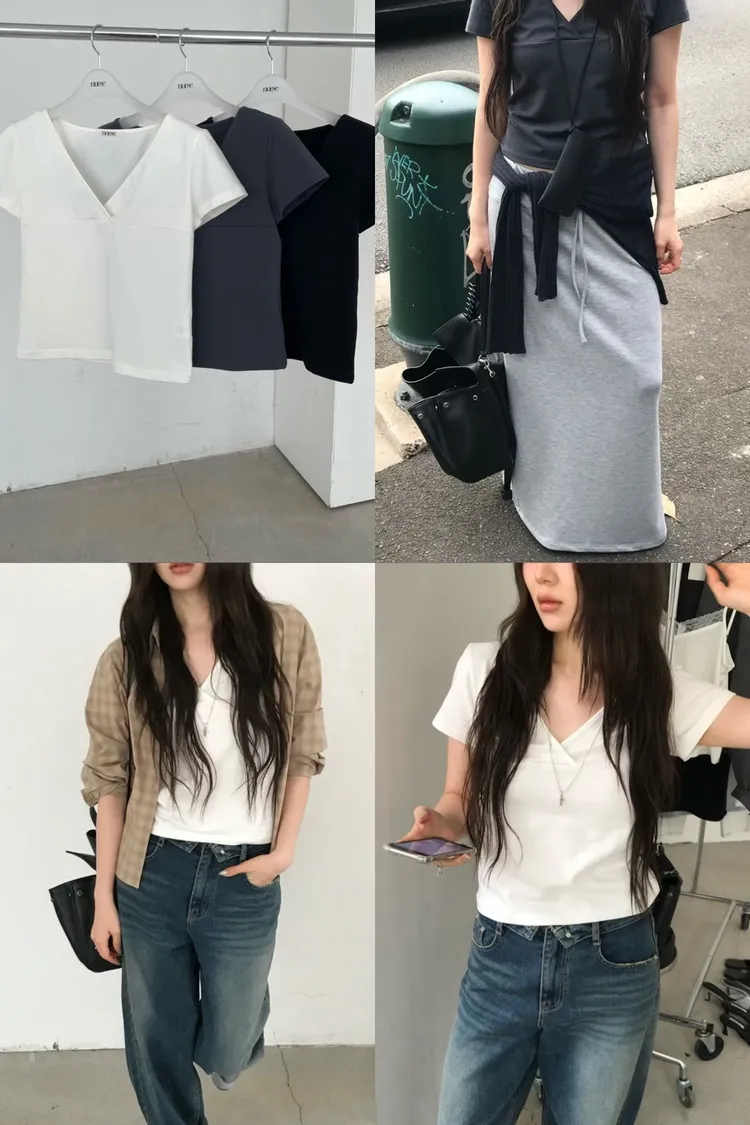 VV262簡單俐落交錯V領短TEE