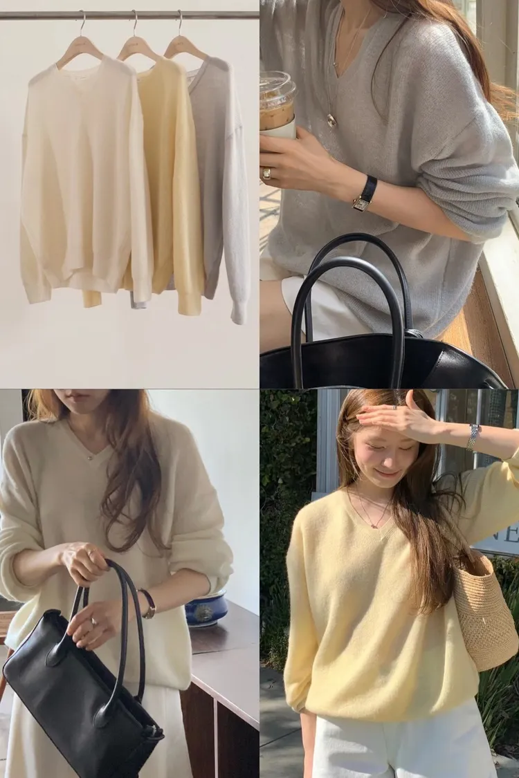 VV285-OUNCE溫暖陽光色系小V領針織上衣