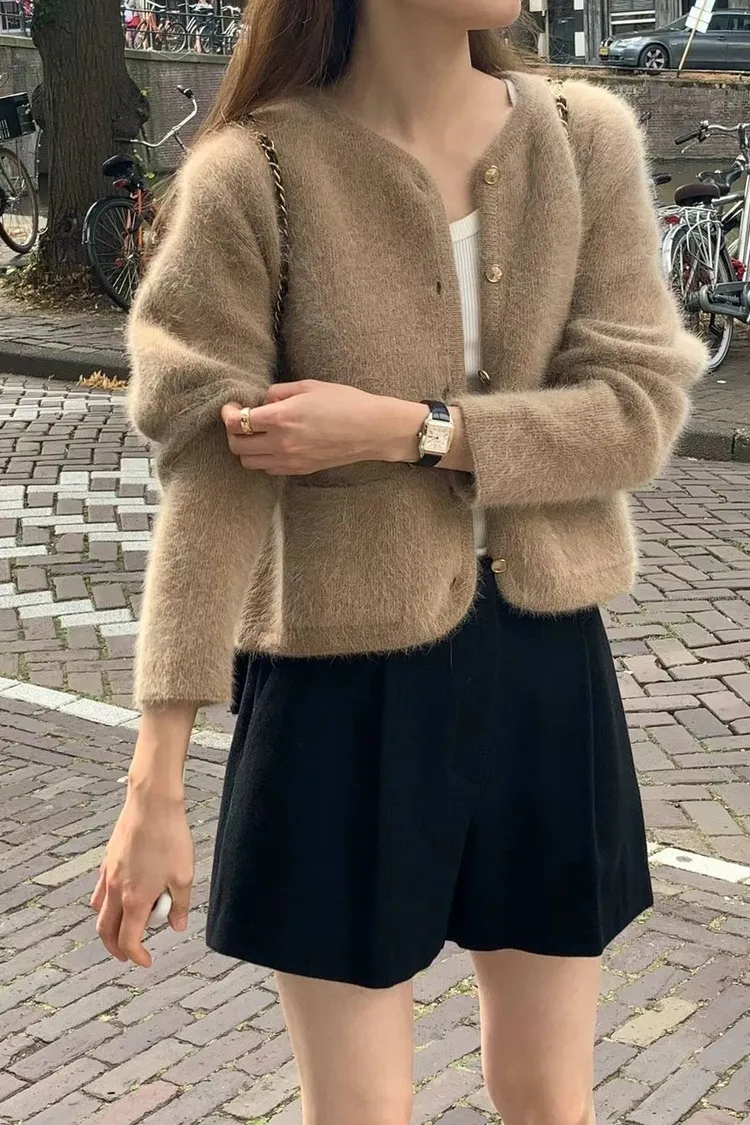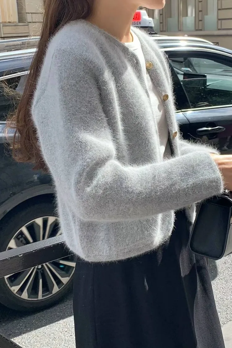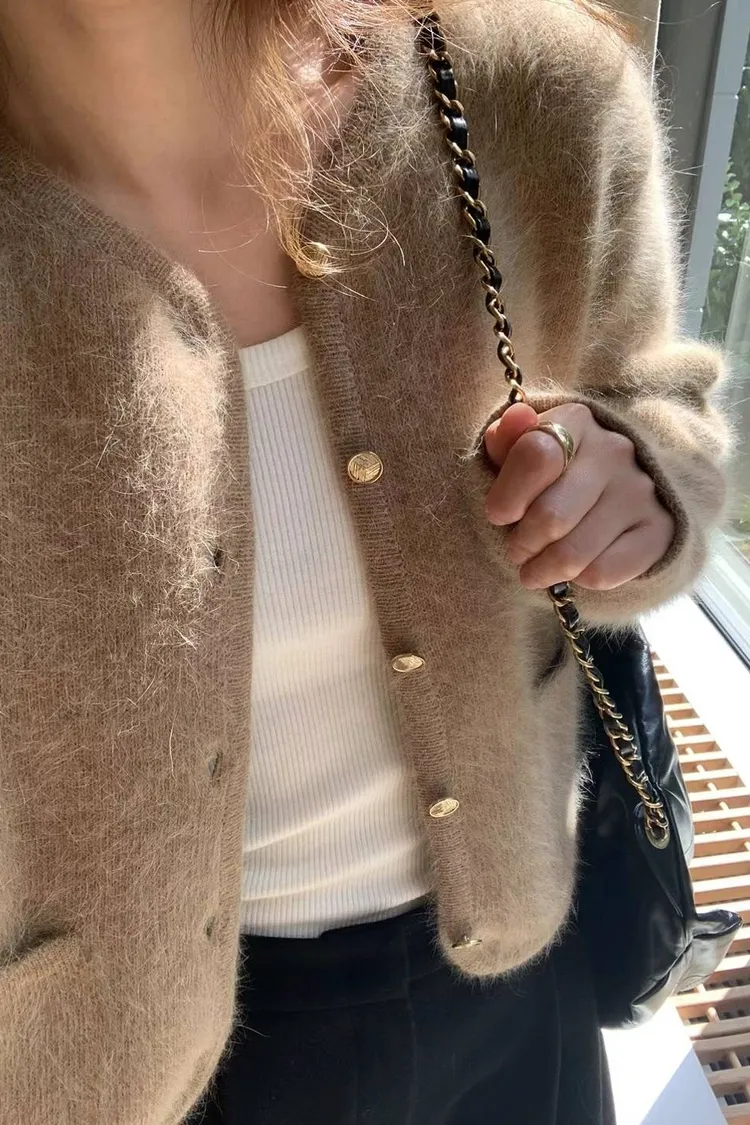 X128安格拉兔毛金釦上衣